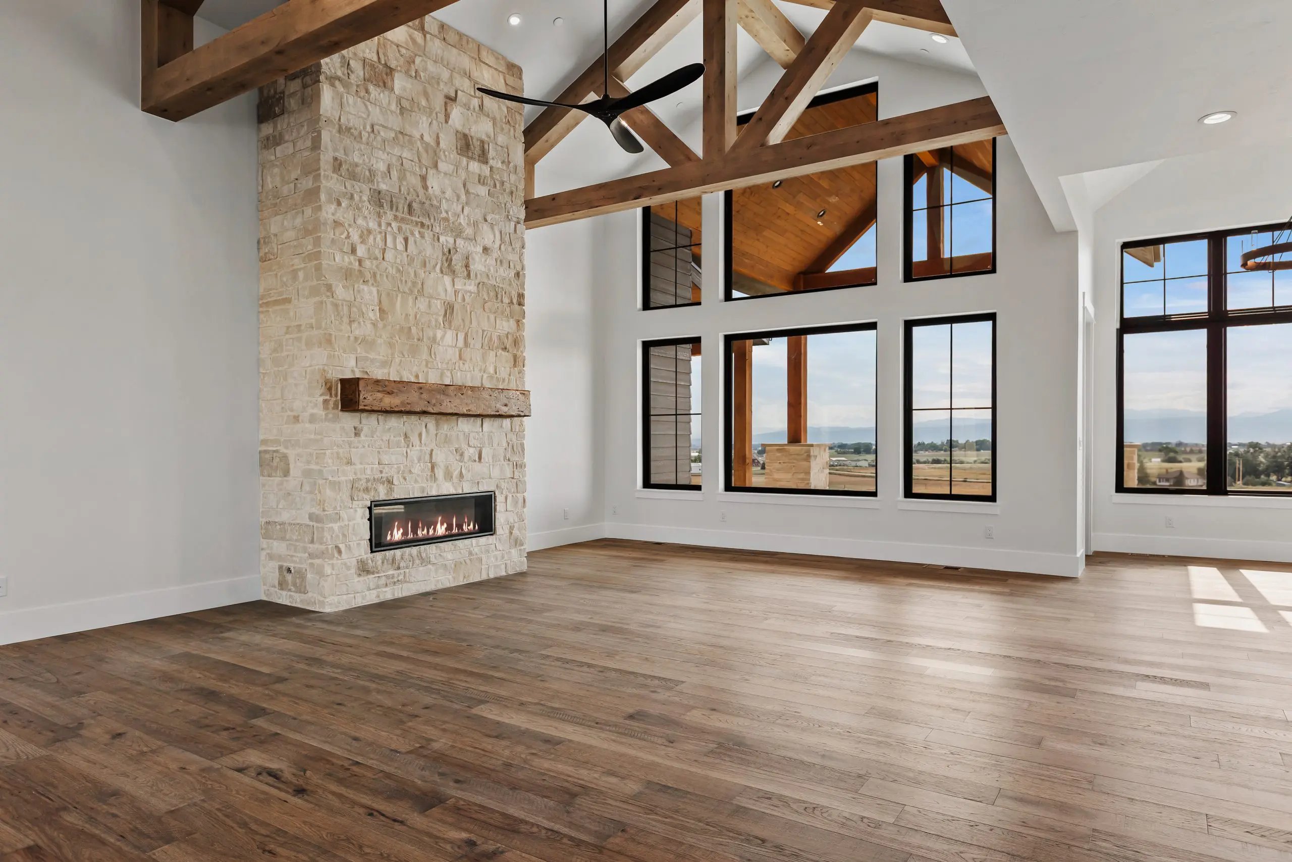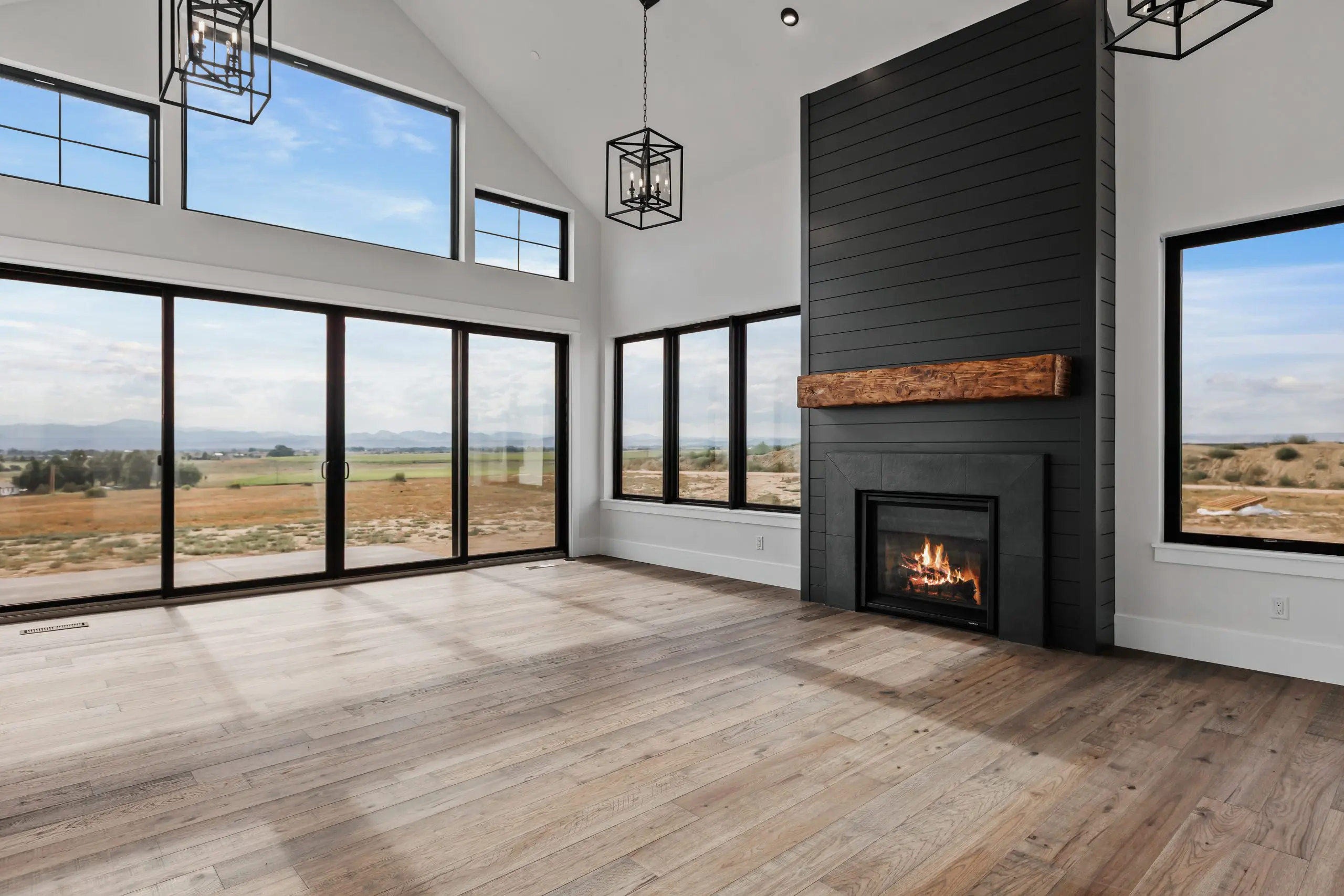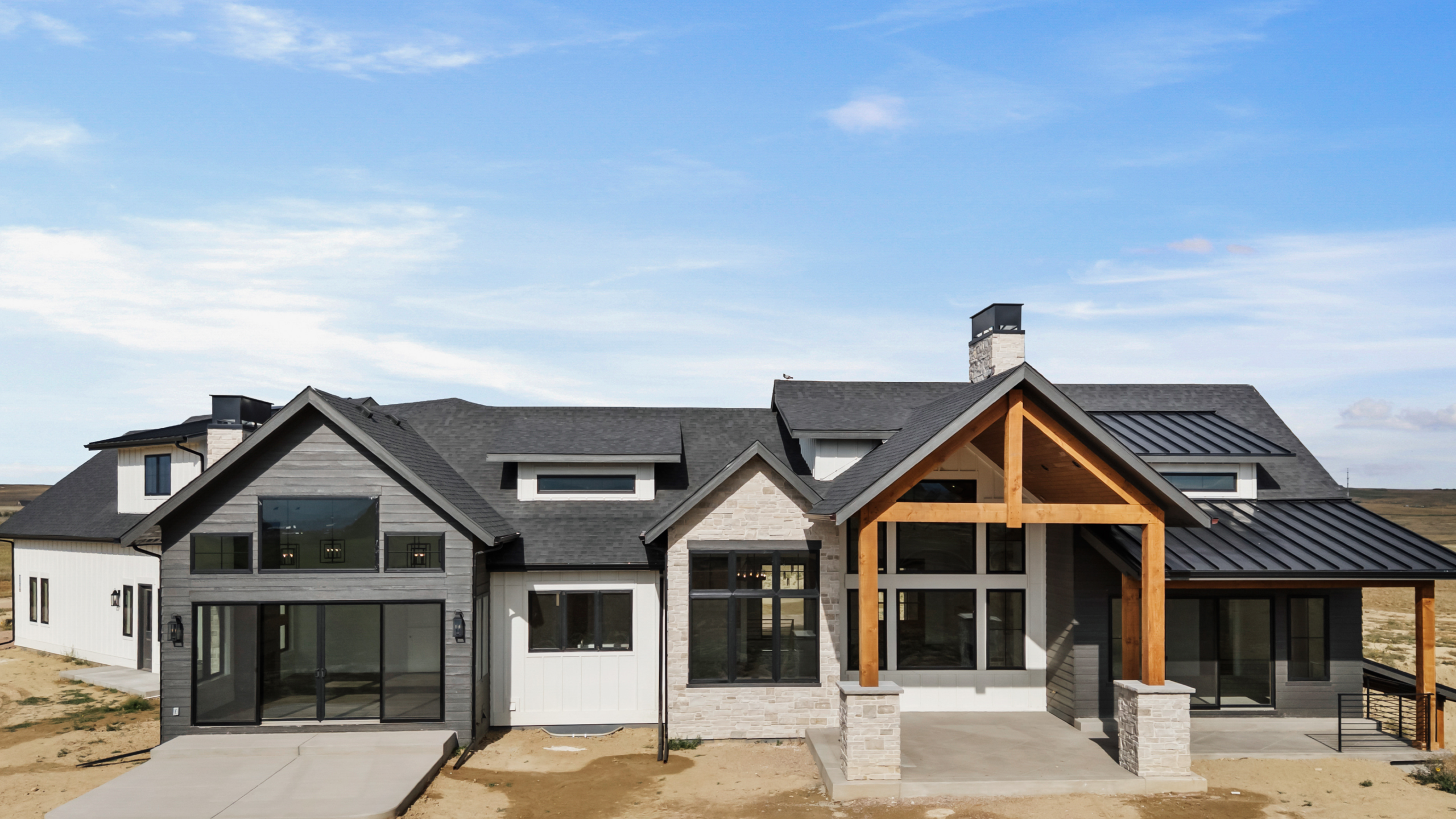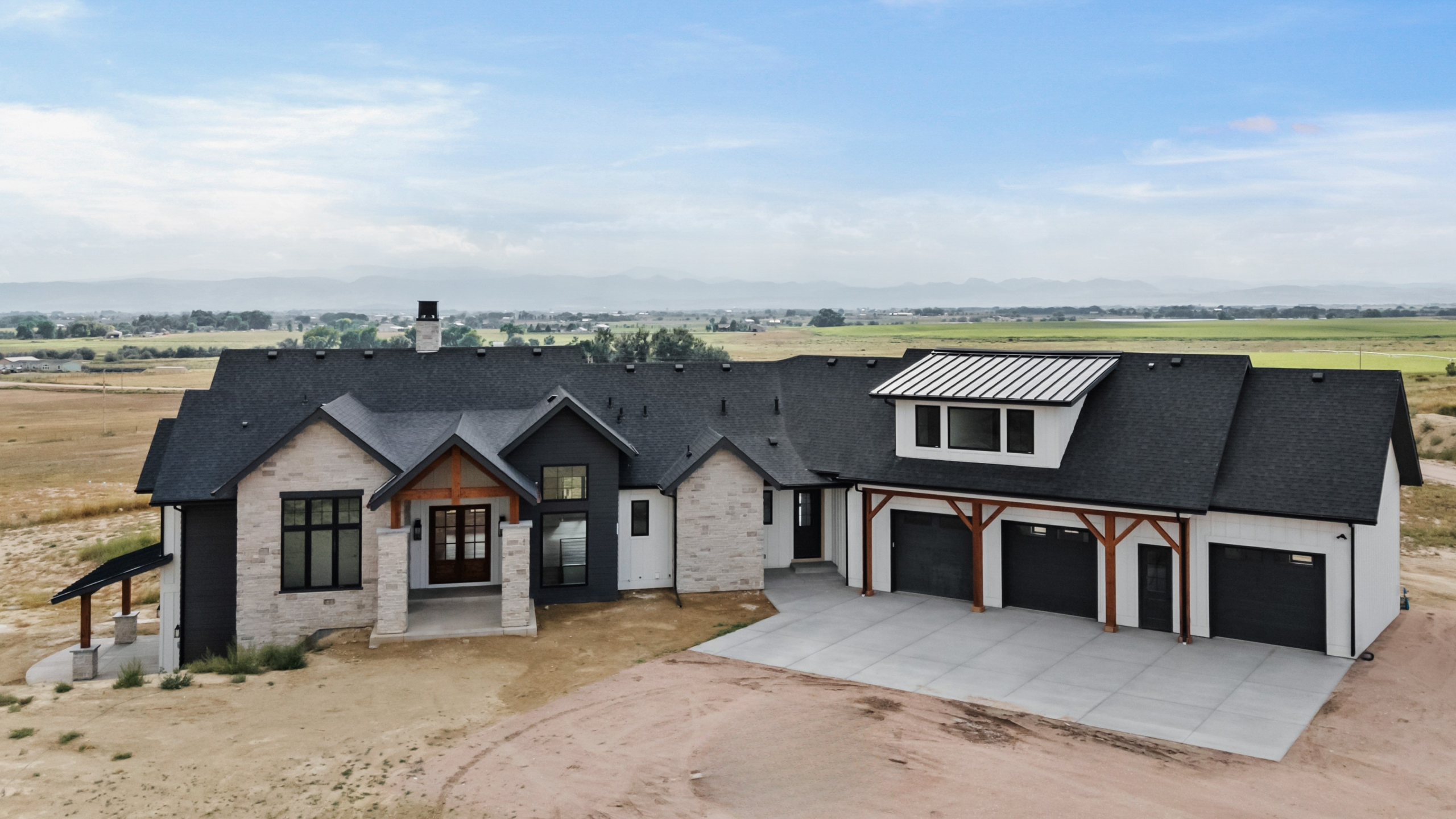 This home is a beautifully crafted modern farmhouse that blends timeless architecture with elevated custom finishes. The exterior showcases a sophisticated mix of painted siding, natural stone, and warm wood accents, creating striking curb appeal with classic Colorado character. Inside, rich hardwood flooring and thoughtfully layered textures set the tone for a luxury custom home designed for both comfort and entertaining. The chef’s kitchen features a large statement island, custom cabinetry, designer lighting, and high-end appliances that anchor the open-concept living space. A spa-inspired primary bathroom offers a freestanding soaking tub, oversized glass shower, and elegant stone tile detailing for a true retreat experience. The spacious laundry room and custom built-ins throughout reflect intentional design and everyday functionality. Every space in this high-end custom home showcases premium craftsmanship and refined modern living.