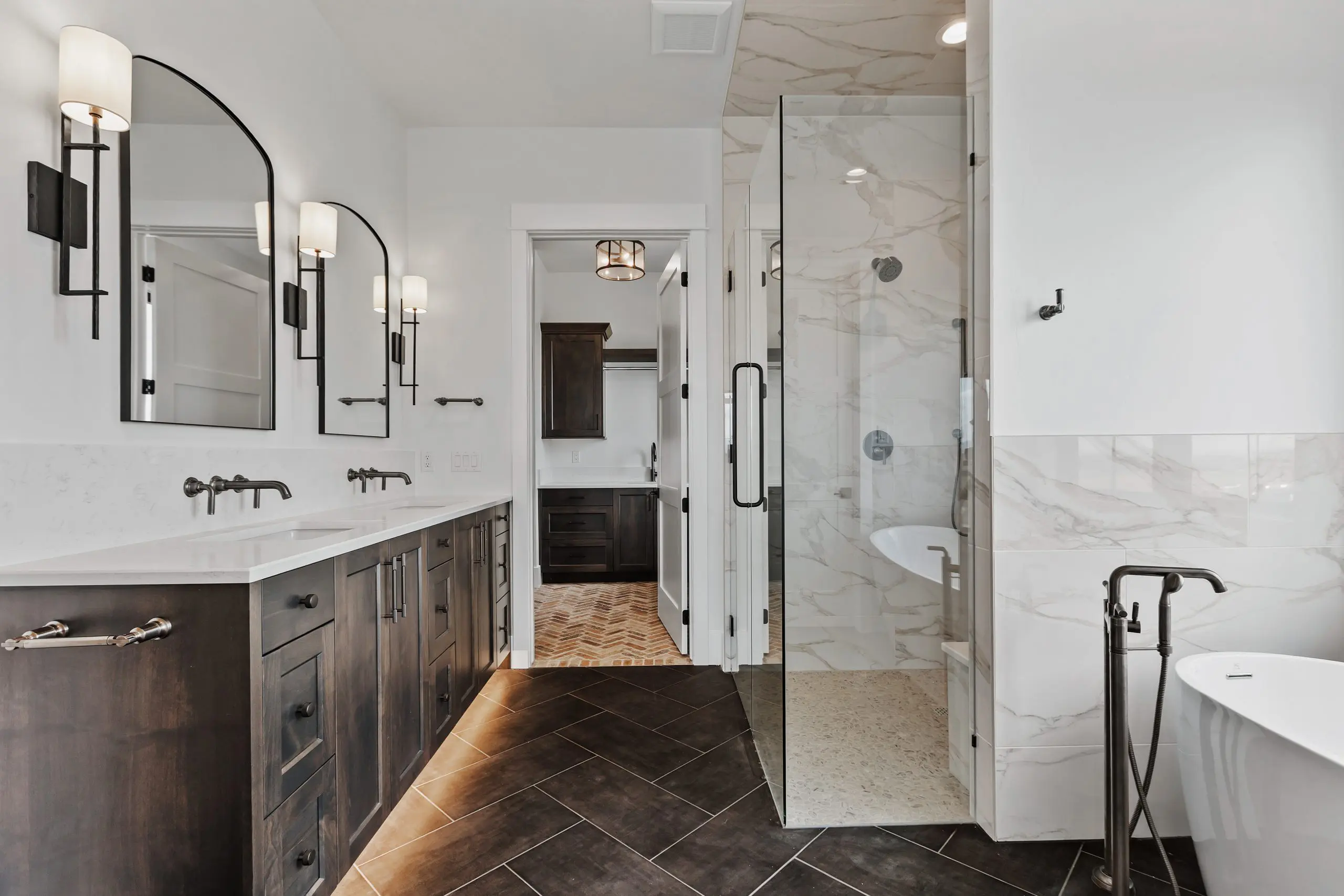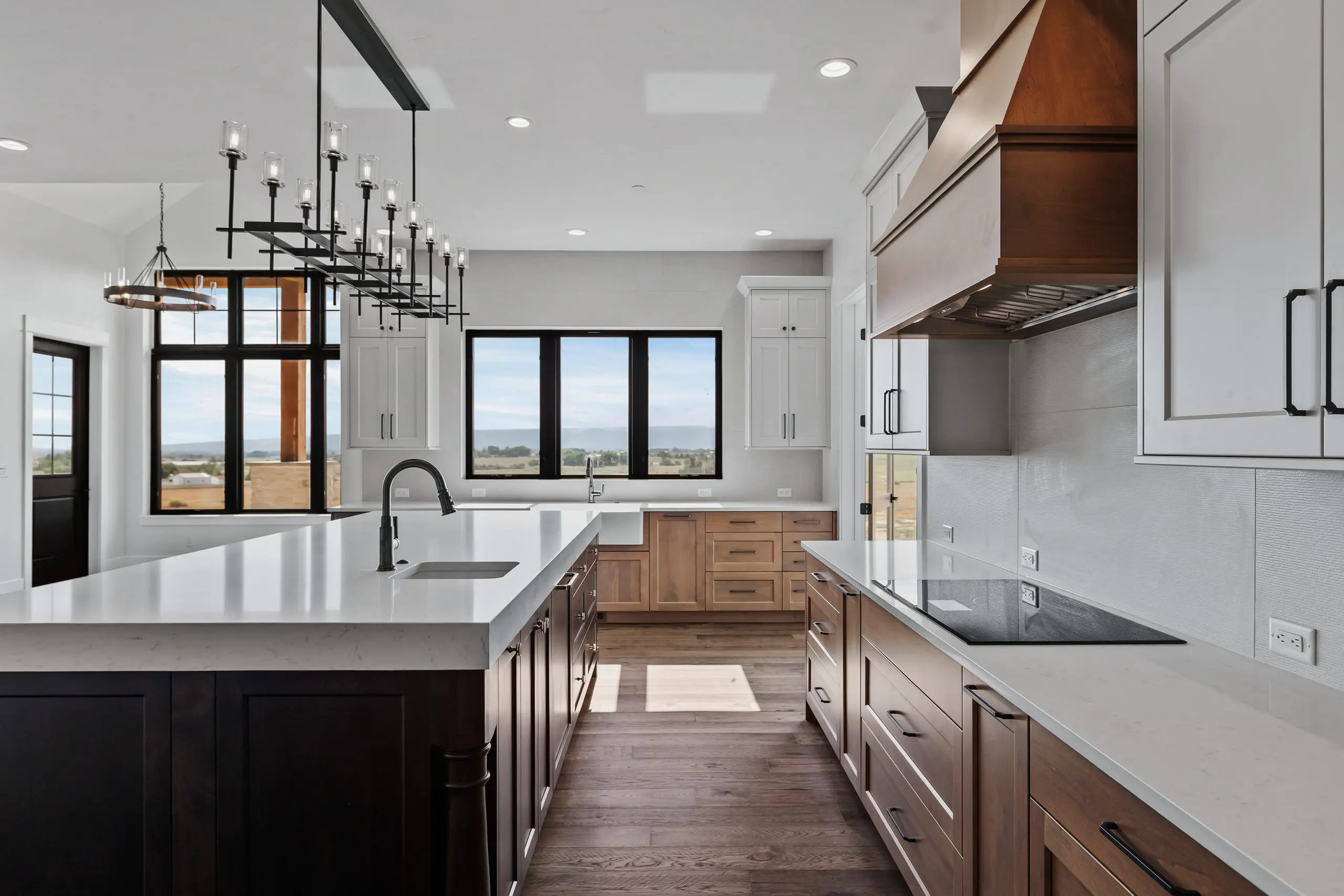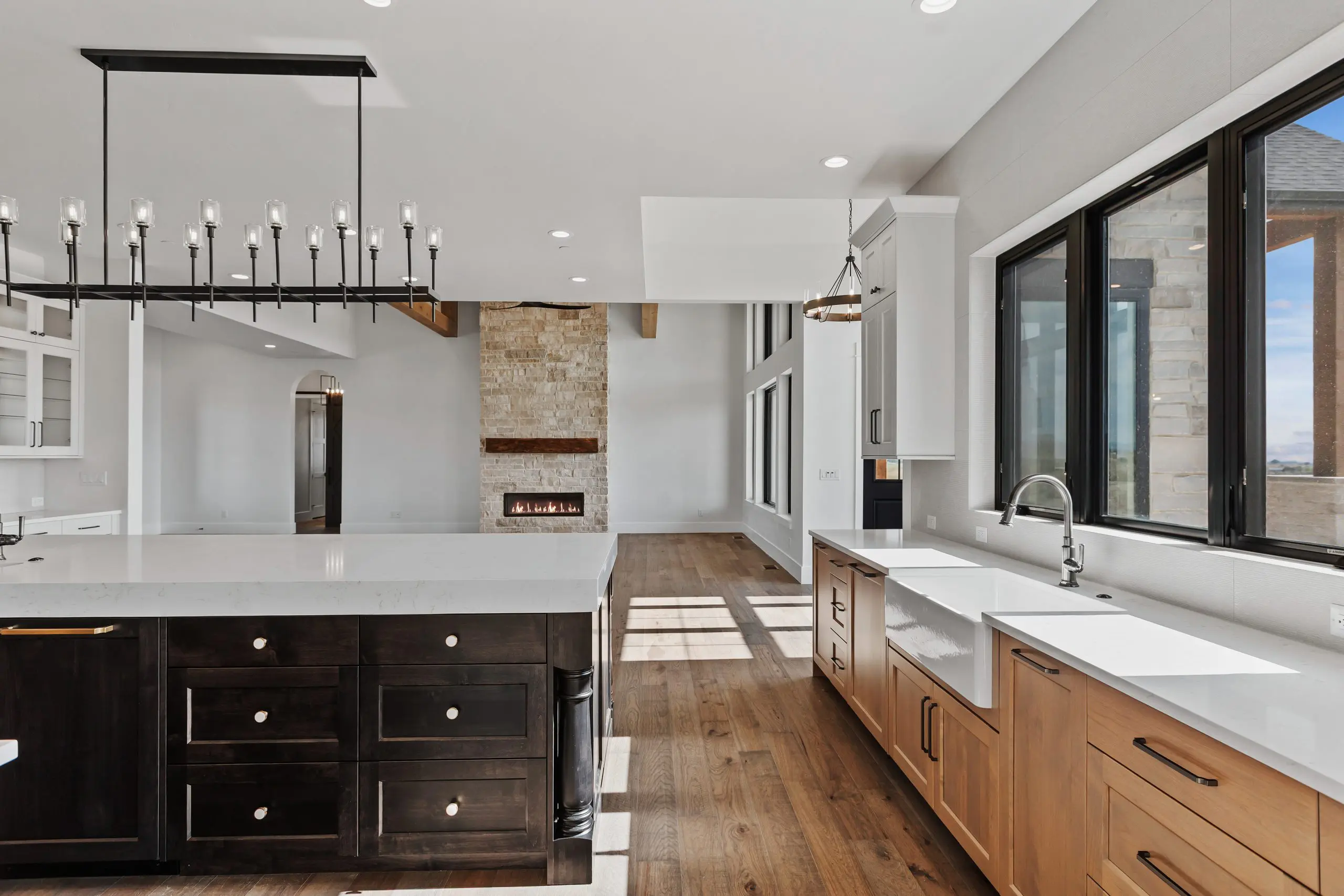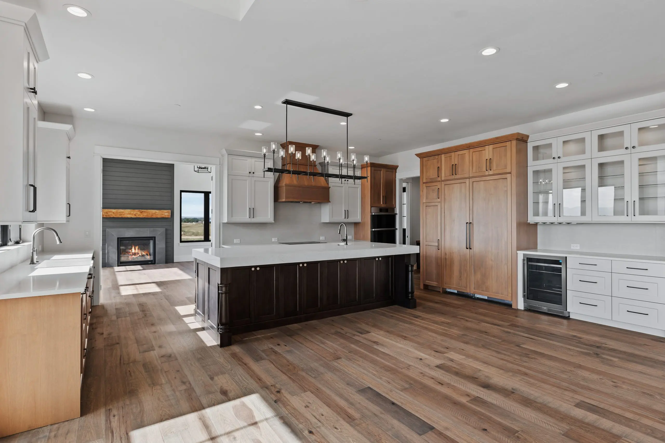 This home is a beautifully crafted modern farmhouse that blends timeless architecture with elevated custom finishes. The exterior showcases a sophisticated mix of painted siding, natural stone, and warm wood accents, creating striking curb appeal with classic Colorado character. Inside, rich hardwood flooring and thoughtfully layered textures set the tone for a luxury custom home designed for both comfort and entertaining. The chef’s kitchen features a large statement island, custom cabinetry, designer lighting, and high-end appliances that anchor the open-concept living space. A spa-inspired primary bathroom offers a freestanding soaking tub, oversized glass shower, and elegant stone tile detailing for a true retreat experience. The spacious laundry room and custom built-ins throughout reflect intentional design and everyday functionality. Every space in this high-end custom home showcases premium craftsmanship and refined modern living.