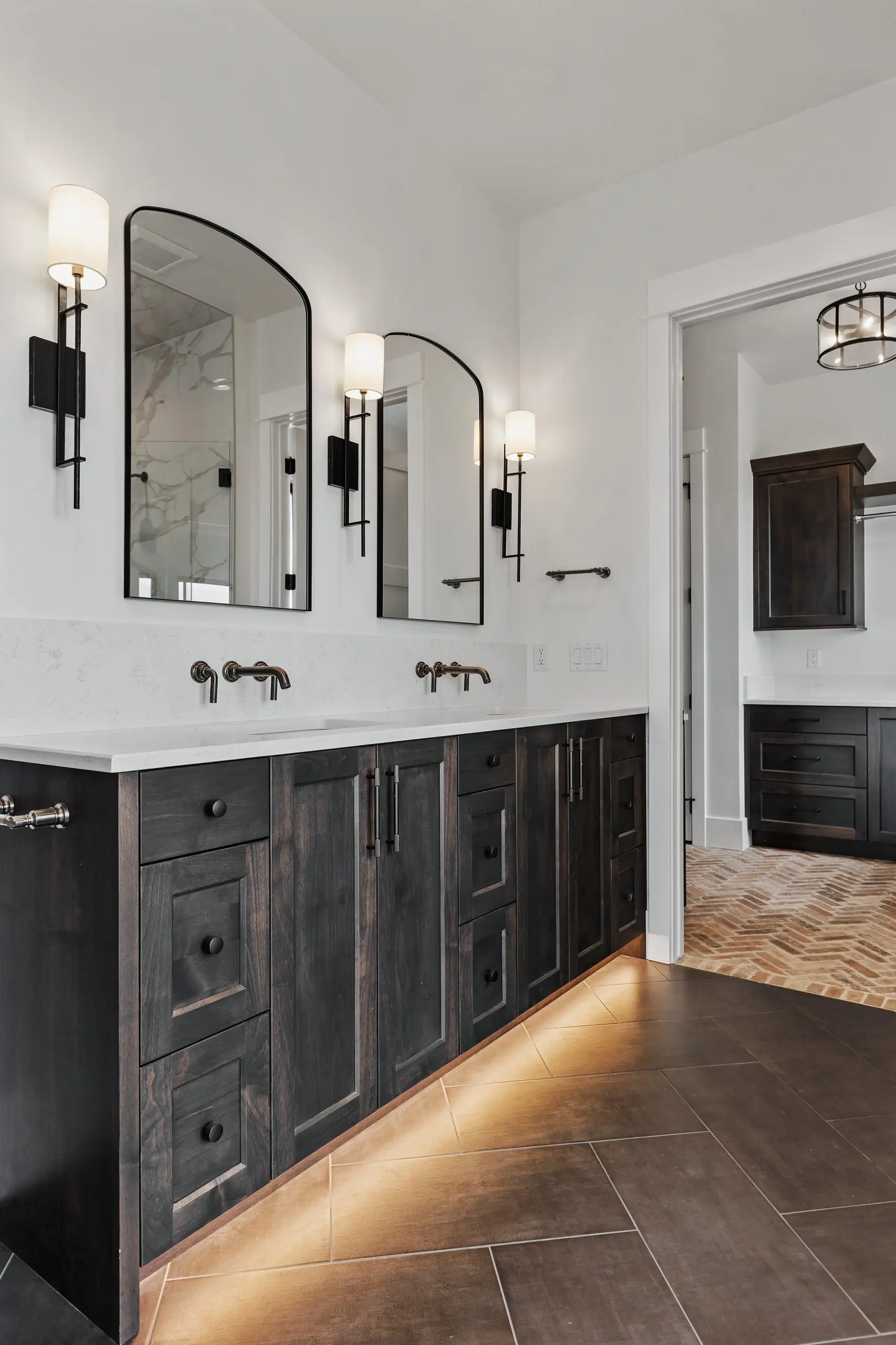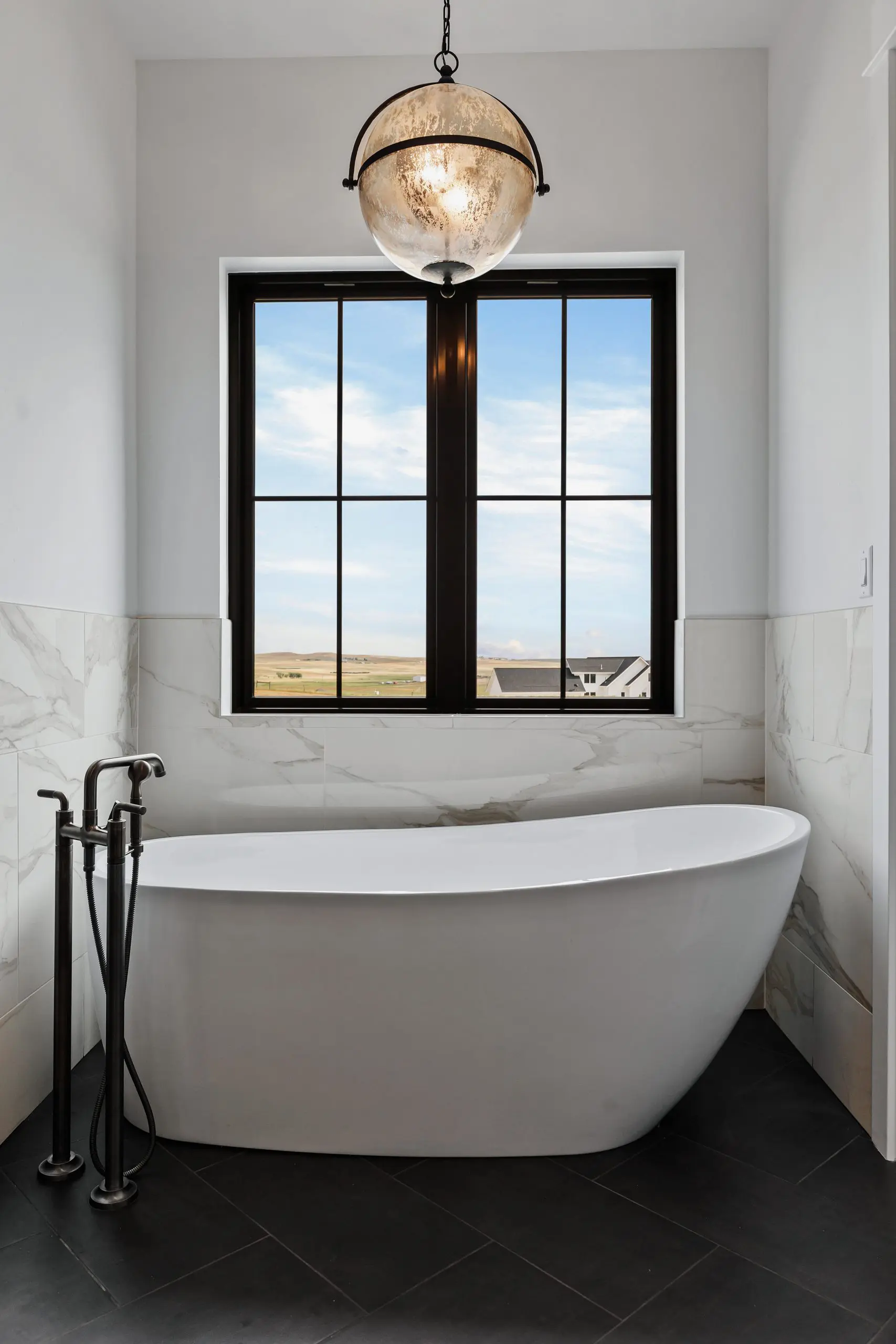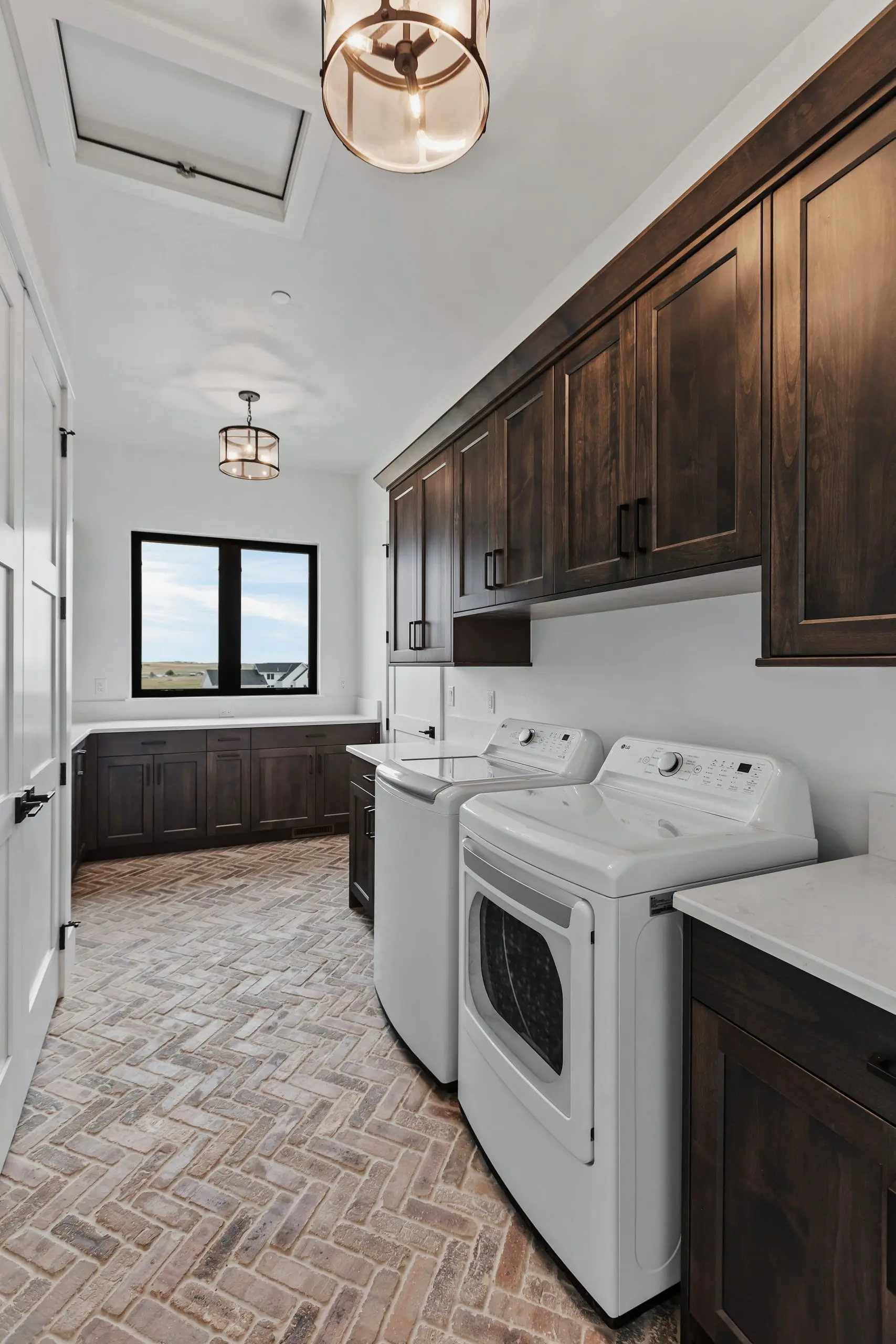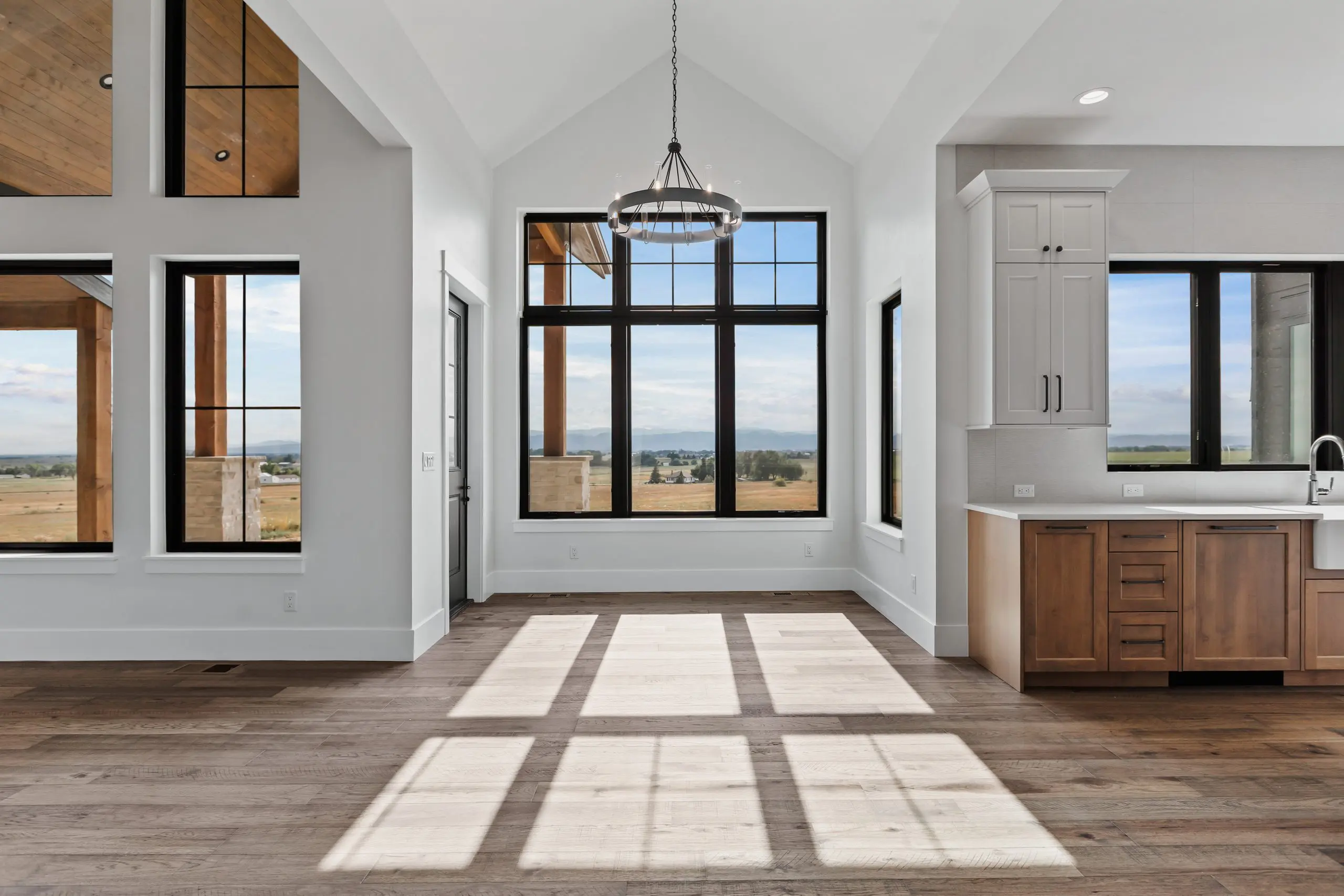 This home is a beautifully crafted modern farmhouse that blends timeless architecture with elevated custom finishes. The exterior showcases a sophisticated mix of painted siding, natural stone, and warm wood accents, creating striking curb appeal with classic Colorado character. Inside, rich hardwood flooring and thoughtfully layered textures set the tone for a luxury custom home designed for both comfort and entertaining. The chef’s kitchen features a large statement island, custom cabinetry, designer lighting, and high-end appliances that anchor the open-concept living space. A spa-inspired primary bathroom offers a freestanding soaking tub, oversized glass shower, and elegant stone tile detailing for a true retreat experience. The spacious laundry room and custom built-ins throughout reflect intentional design and everyday functionality. Every space in this high-end custom home showcases premium craftsmanship and refined modern living.