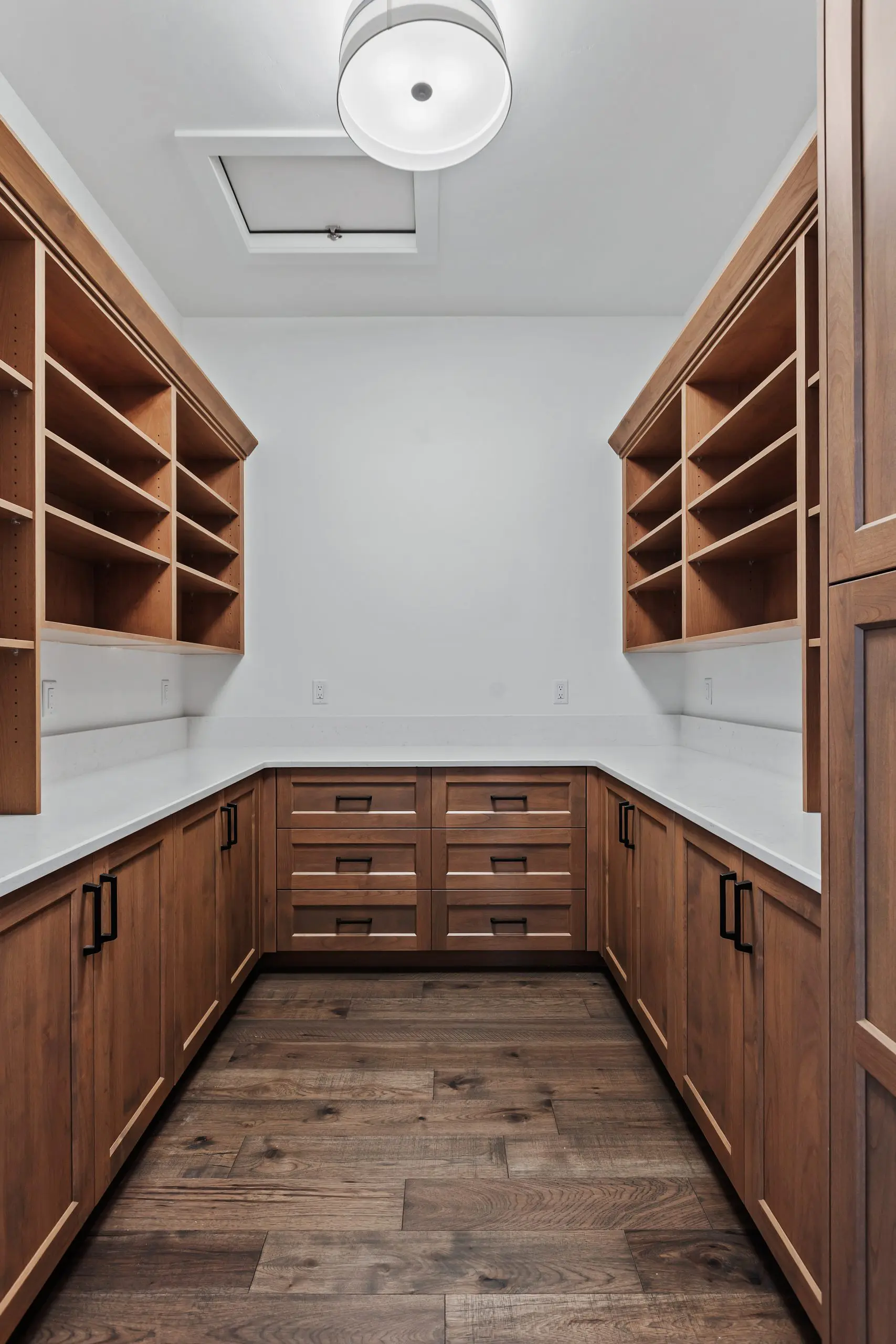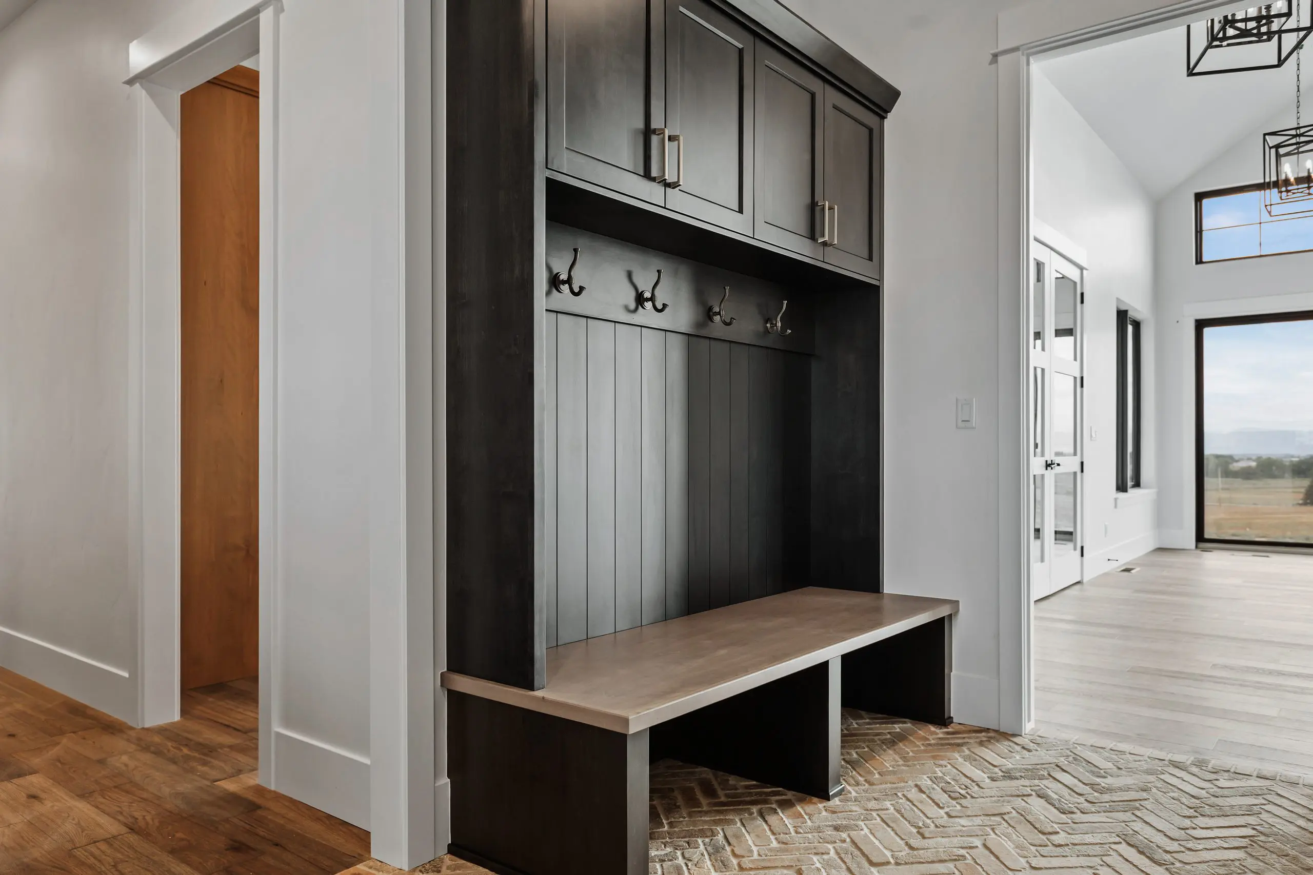 If you’re dreaming of a charming home of your own – look no further than this farmhouse-inspired ranch. Just past the foyer, a large living room welcomes you with a warming fireplace and large windows to share the beautiful Colorado sunshine with guests. The bright kitchen provides a slew of cabinet space accented with a modern subway-style backsplash. Perfect for a small family, the mudroom boasts a custom bench and storage system leading to a laundry room that doubles as a small office space.